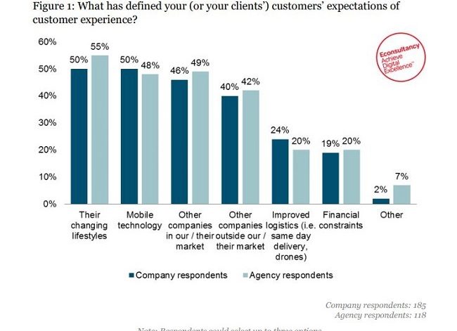 Econsultancy’s CX Best Practice guide backs up the demand for mobile strategy, with research showing that 50% of executives now recognise that mobile has a key role to play in defining CX. Once again, however, more needs to be done to meet consumer expectations, with only 6% of organisations currently regarding themselves as ‘very advanced’ in mobile CX.